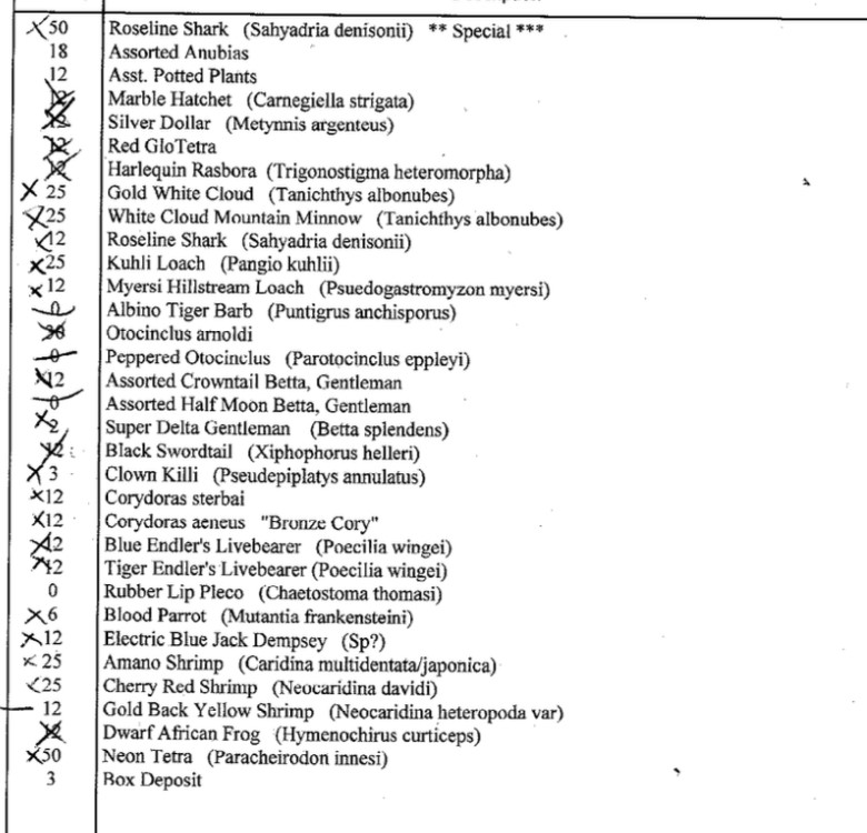 FW Aquarium Checklist