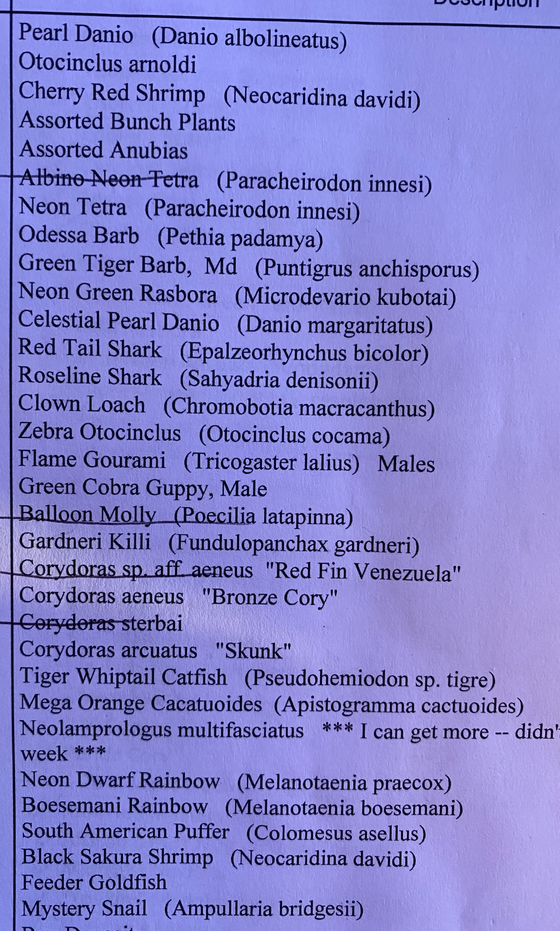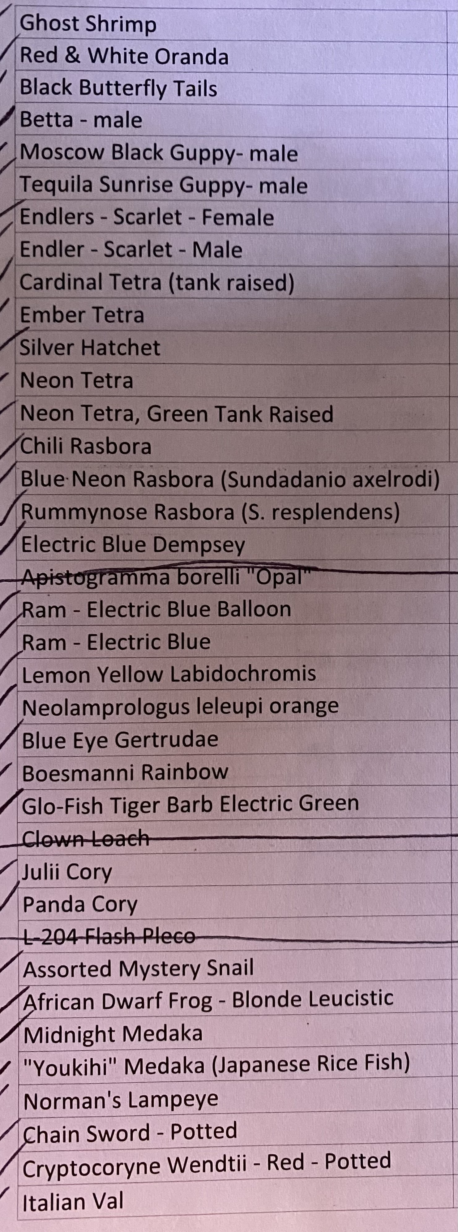 FW Aquarium Checklist