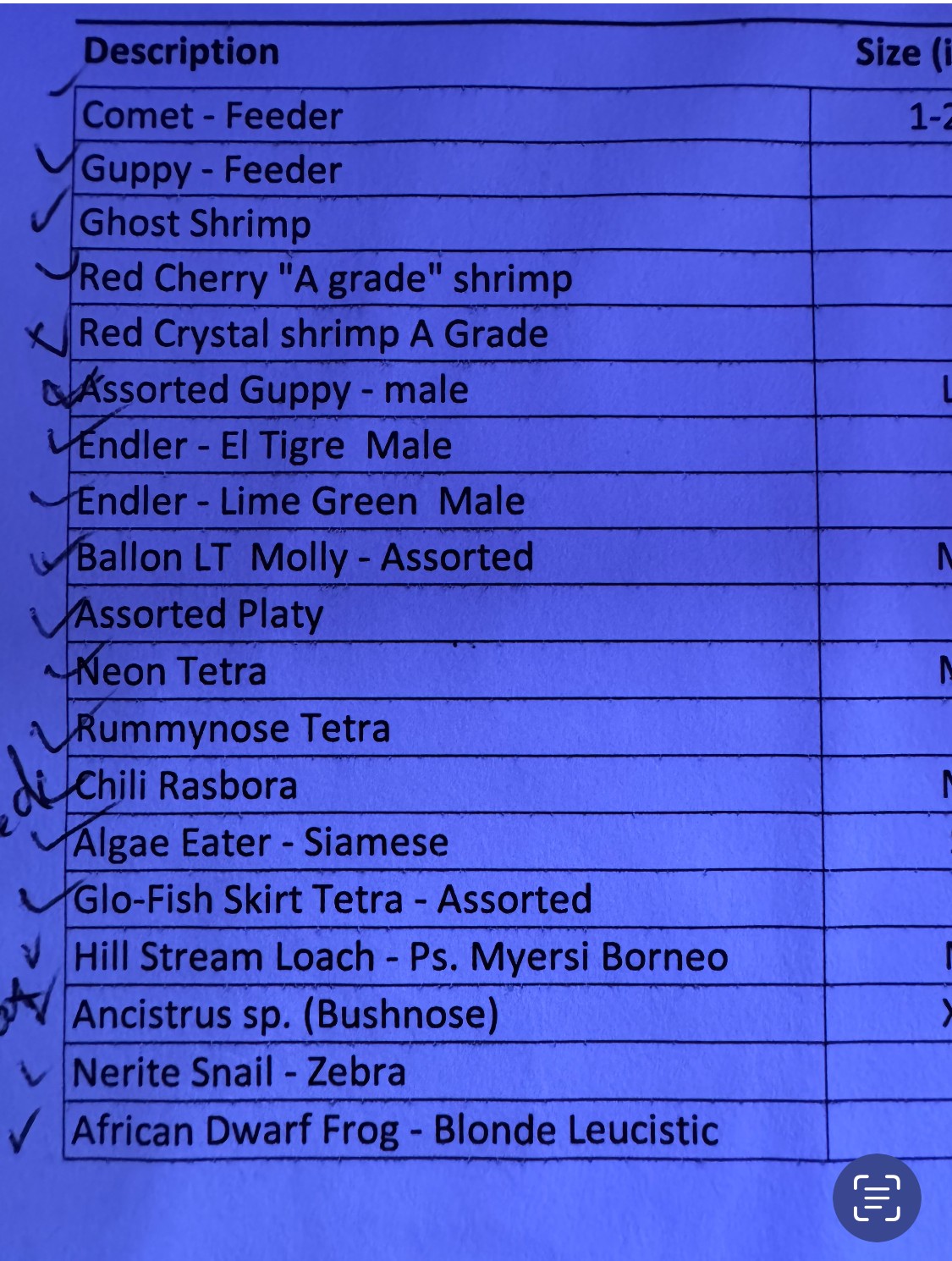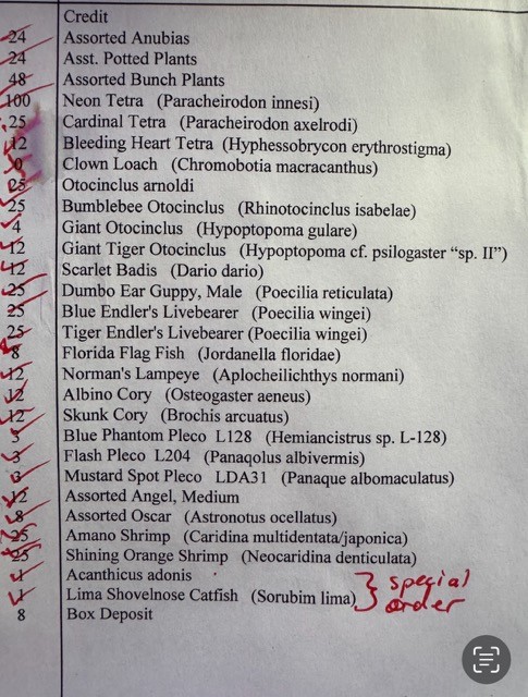 FW Aquarium Checklist